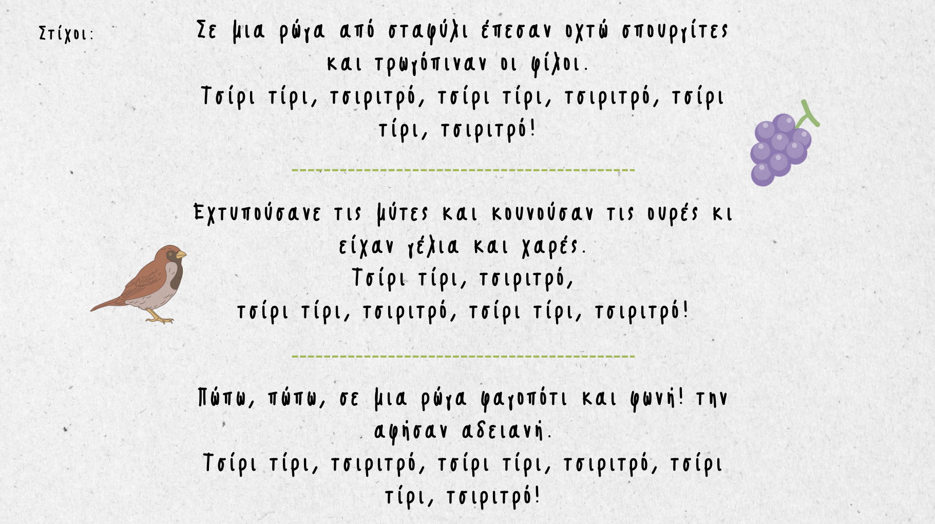 Μάθημα : Τρύγος- Σε μια ρόγα από σταφύλι