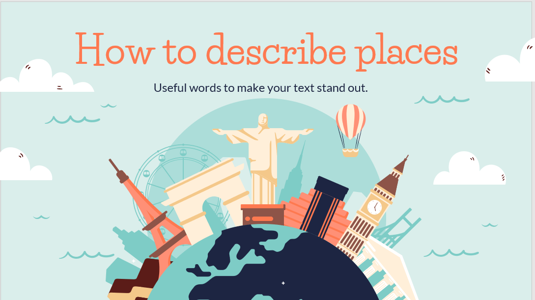 | describe places 1 This multimedium was created by me as a PowerPoint. It was print-screened and adjusted for the purposed of our lesson. Δημιουργός: CHRYSI NTINA |