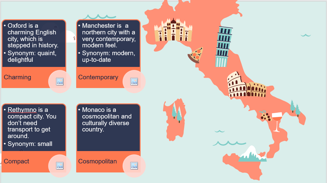 | describe places 2 This multimedium was created by me as a PowerPoint. It was print-screened and adjusted for the purposed of our lesson. Δημιουργός: CHRYSI NTINA |