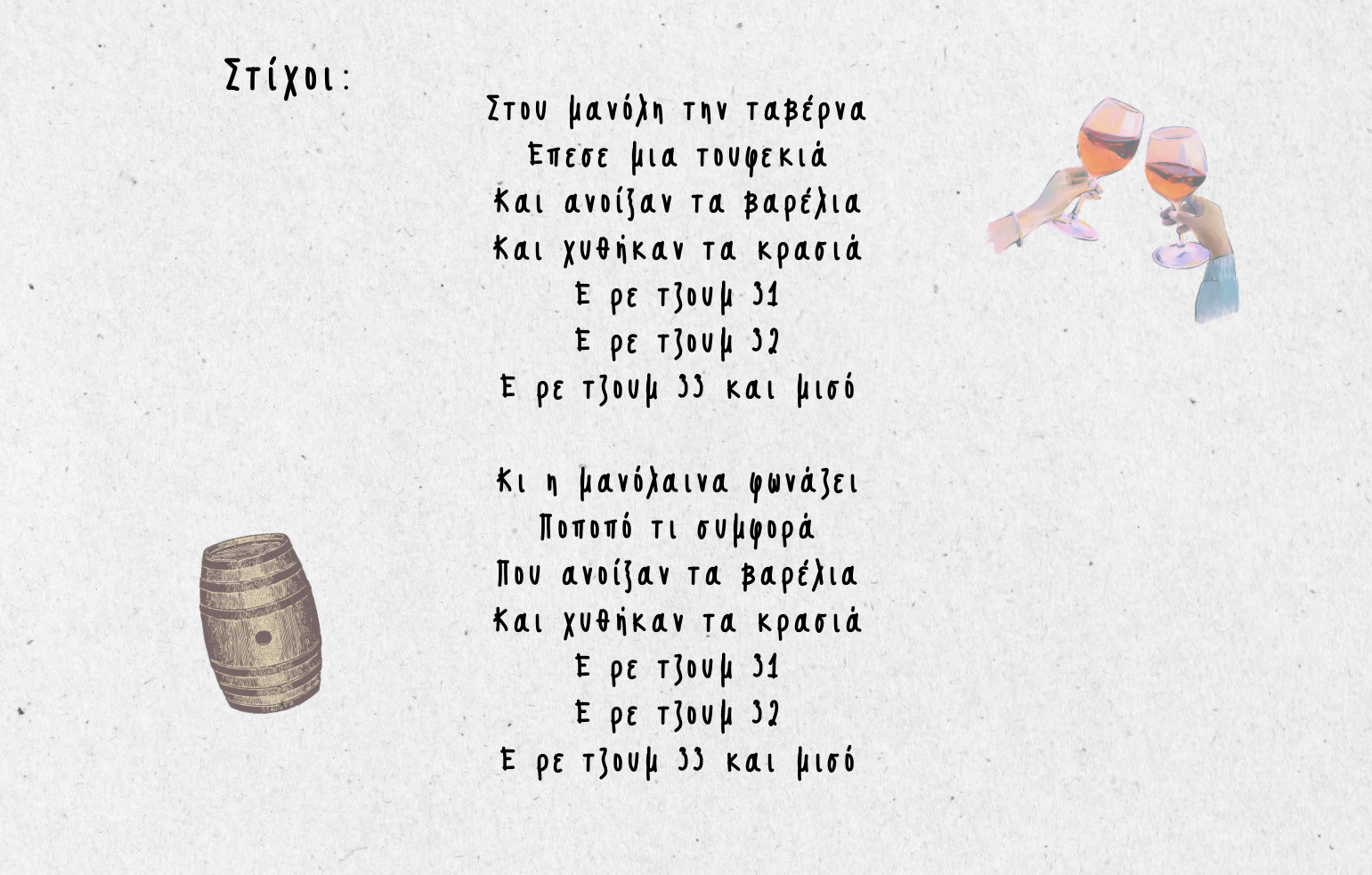 | Στίχοι στου Μανώλη την ταβέρνα Δημιουργός: KONSTANTINA LOUKAKI |
